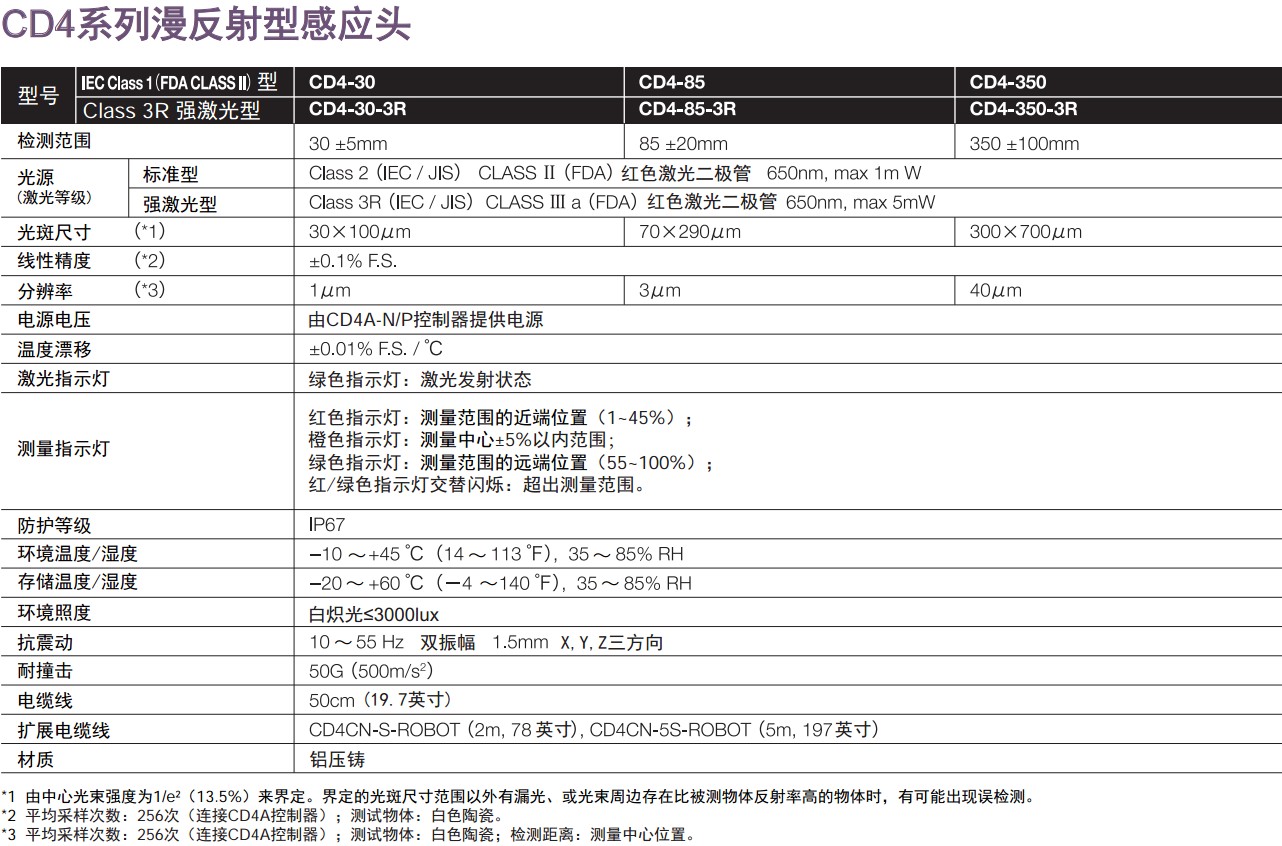 激光位移傳感器CD4系列技術參數: