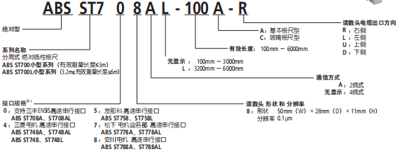 產(chǎn)品介紹ABS ST700/ST700L電磁感式絕對(duì)光柵尺 ,量程6米,顯示精度0.1um/0.5um/0.01um/0.05um高頻率及穩(wěn)定性。 ABS ST700系列特點(diǎn): 1、抗污染強(qiáng) 2、適合線性電機(jī) ABS ST700系列解決方案: ●線性電機(jī)用反饋?光柵尺 1.因?yàn)槭墙^對(duì)式光柵尺 適用于日本廠家伺服放大器接口