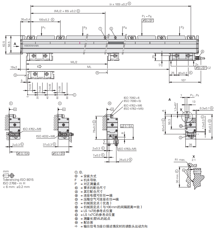 每50 mm可用磁條選擇,標準設置:中間位置1個參考點